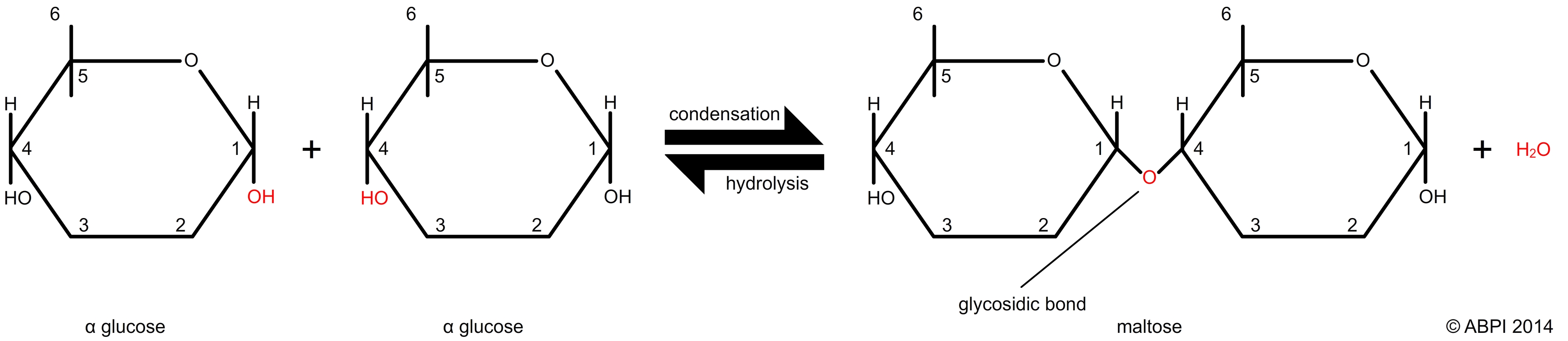 Disaccharides are made up to two monosaccharide units joined together. Examples include the sucrose we eat (usually known as just sugar), and lactose, the sugar which sweetens milk. Disaccharides are joined using a simple condensation reaction which forms a bond between the two monosaccharide units known as a glycosidic bond. Glycosidic bonds are broken in a hydrolysis reaction to produce two monosaccharides.