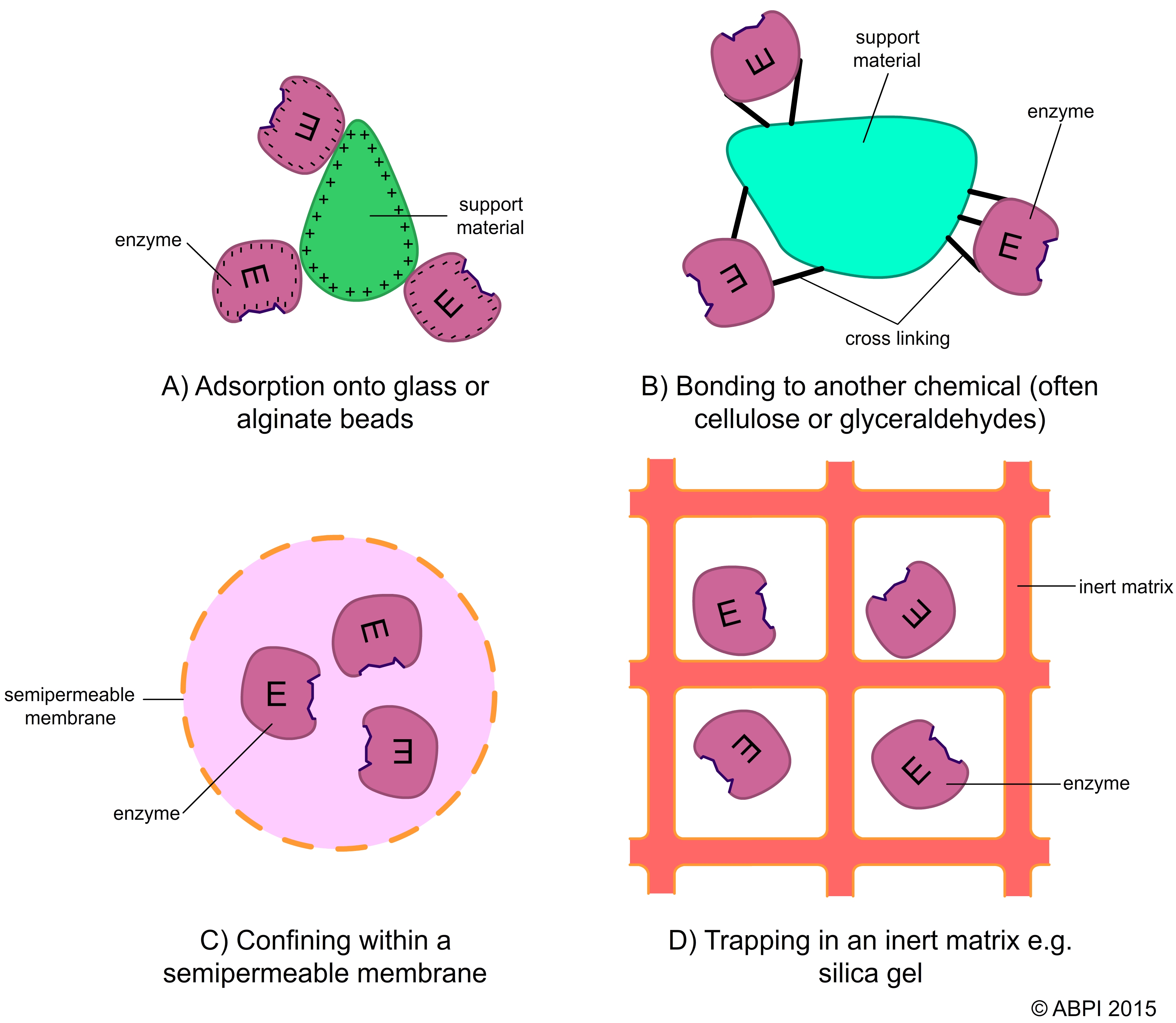 Methods of immobilising enzymes – each has advantages and disadvantages