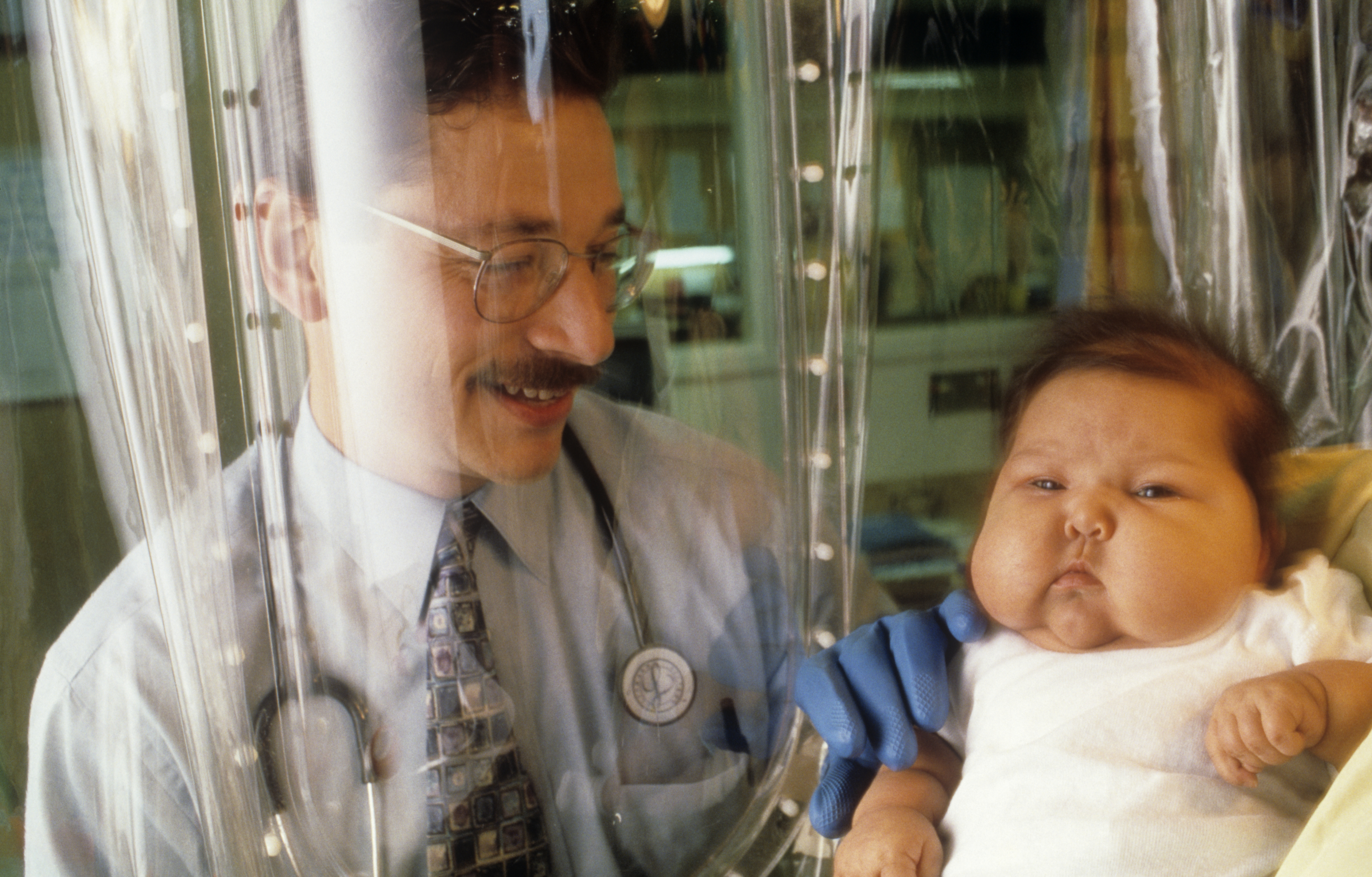In the past, the only way of keeping these children alive was to bring them up in a completely sterile environment, with all their food, water and air sterilised and with no direct contact with other people. Even then, affected children rarely lived into their teens as the slightest contamination could kill them.