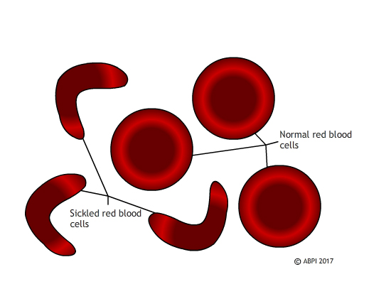 Unlike SCID, which is extremely rare, sickle cell disease affects millions of people around the world. In sickle cell disease, a mutation in a single gene affects the formation of one of the two types of protein chain which make up haemoglobin. This changes the shape of the haemoglobin molecule and reduces its ability to carry oxygen. The mutated haemoglobin also makes the red blood cells take on a sickle shape instead of the normal biconcave discs. These sickled red blood cells tend to stick together. They block small blood vessels, causing terrible pain and often tissue damage as well. People who are affected need regular blood transfusions, and often strong painkillers. Bone marrow transplants can treat the disease, but only about 10% of the millions of people affected globally ever find a matching donor. Ultimately - and especially if untreated – sickle cell disease can kill.