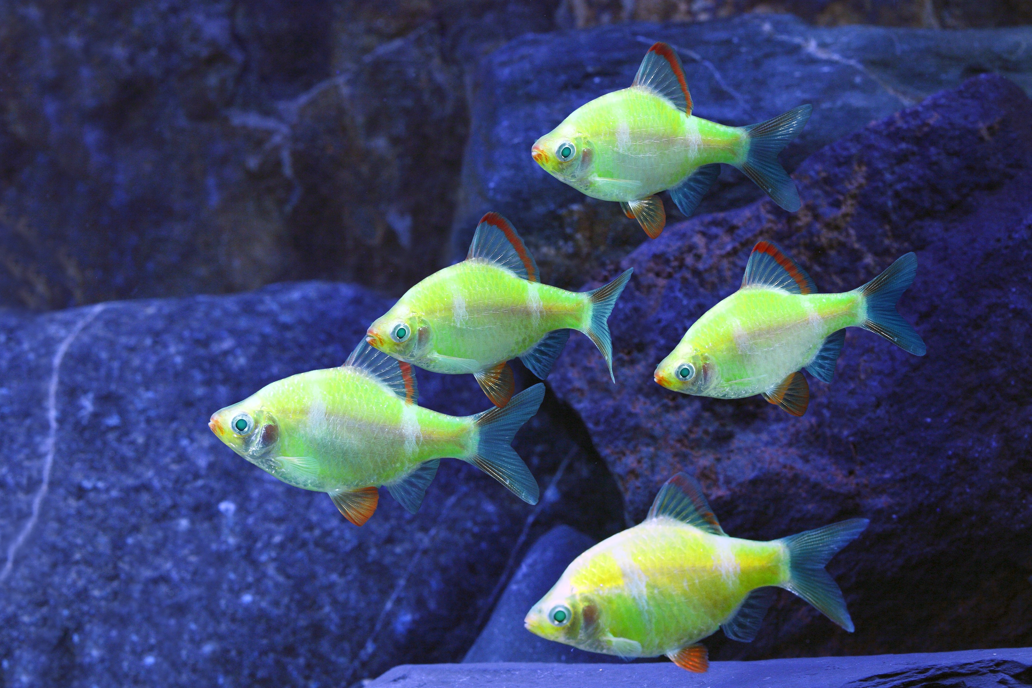 As well as plants, the US is also the only country so far to allow the sale of genetically engineered pets to the public. GloFish are tropical fish that contain a gene which makes them fluorescent. If they did escape from a home aquarium, they would not survive in the wild: they are tropical fish and can only survive in warm freshwaters. Any predator that eats a GloFish is not harmed – the fluorescence causes no problems.