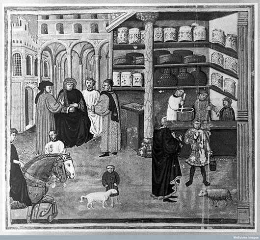 For many centuries after the fall of the Roman Empire, the Arabic world was the centre of scientific and medical knowledge. Texts from Greece and Rome were translated into Arabic and studied by Islamic scholars. They developed and refined Hippocrates’ theories and Islamic physicians began to use the regulation of diet, exercise and the prescription of medicinal herbs in the treatment of their patients. Arabic pharmacists became skilled in the formulation of medicines from plants and minerals. Even though they did not know about microbes, they used alcohol to clean wounds which healed better and did not become infected.