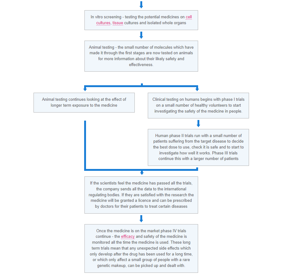 Research into a new medicine has to make sure that all these conditions are met. This is why it takes a very long time - up to 12 years - and a great deal of money - up to around £550 million - to bring a new medicine into the doctor's surgery.