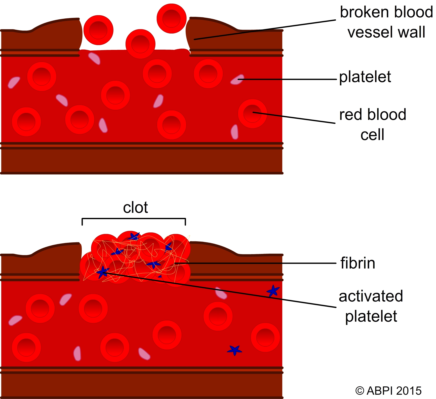 5. If the skin is broken, the blood clots and then a scab forms. This prevents you bleeding to death and prevents the entry of pathogens directly into the blood, as well as protecting the new skin as it grows.